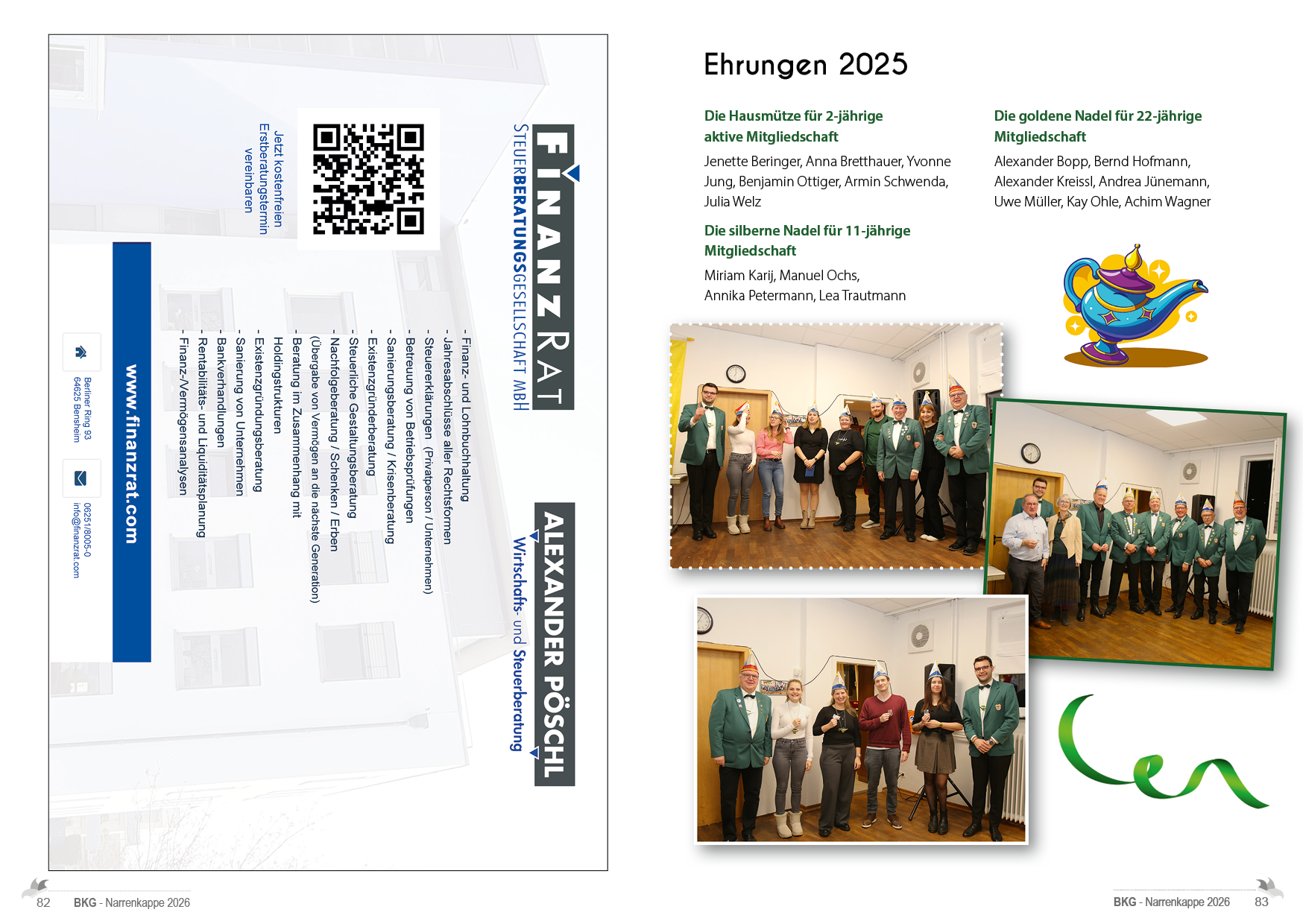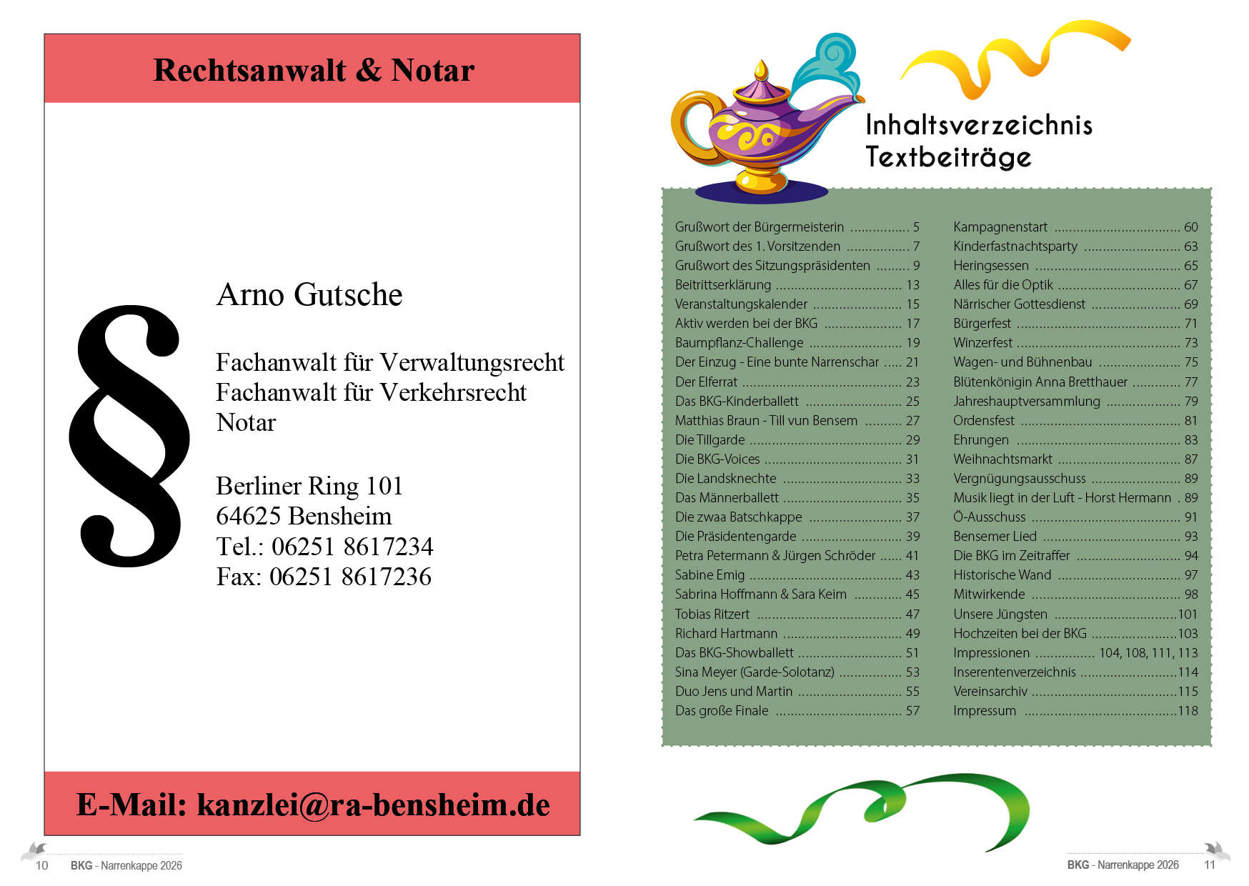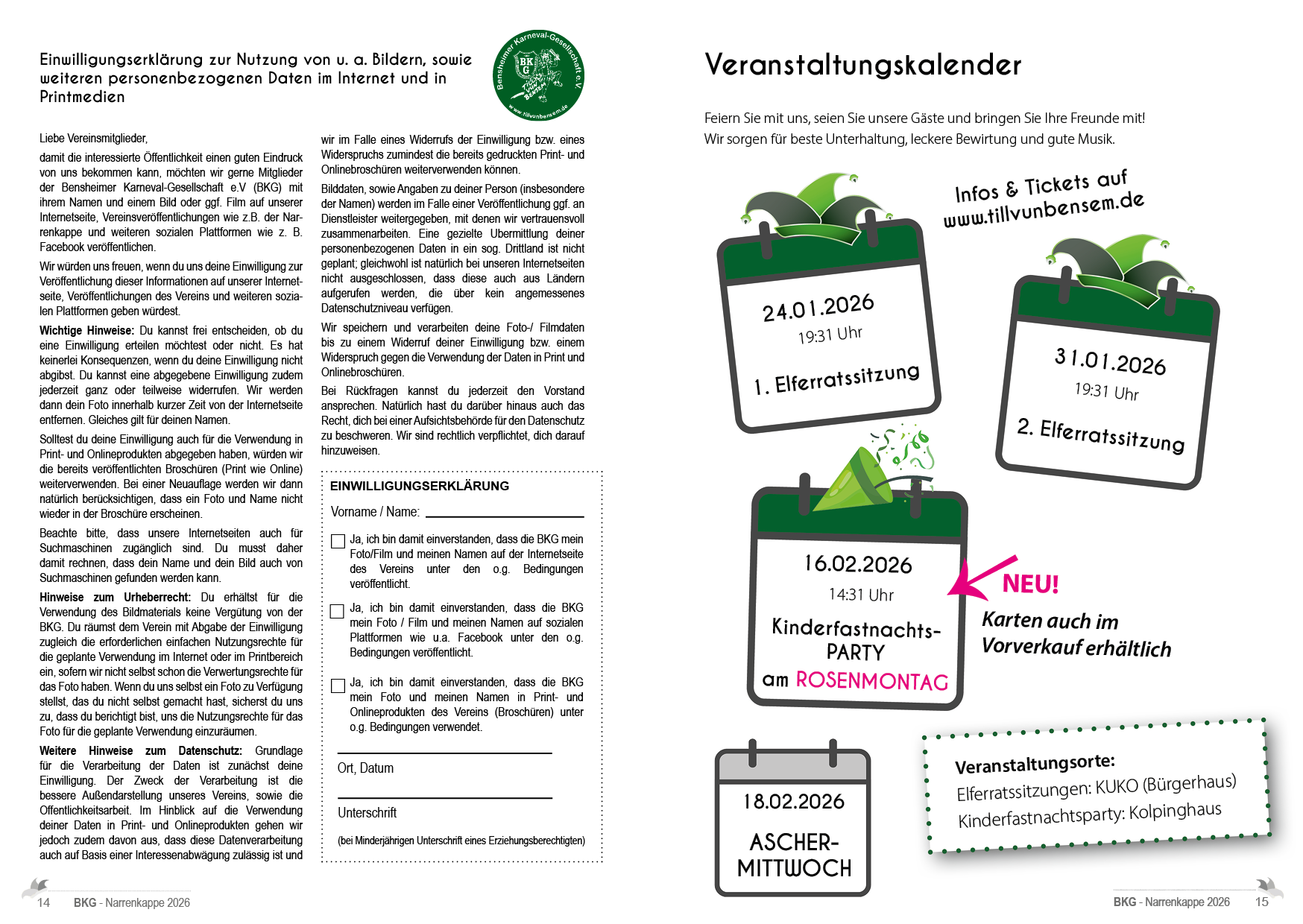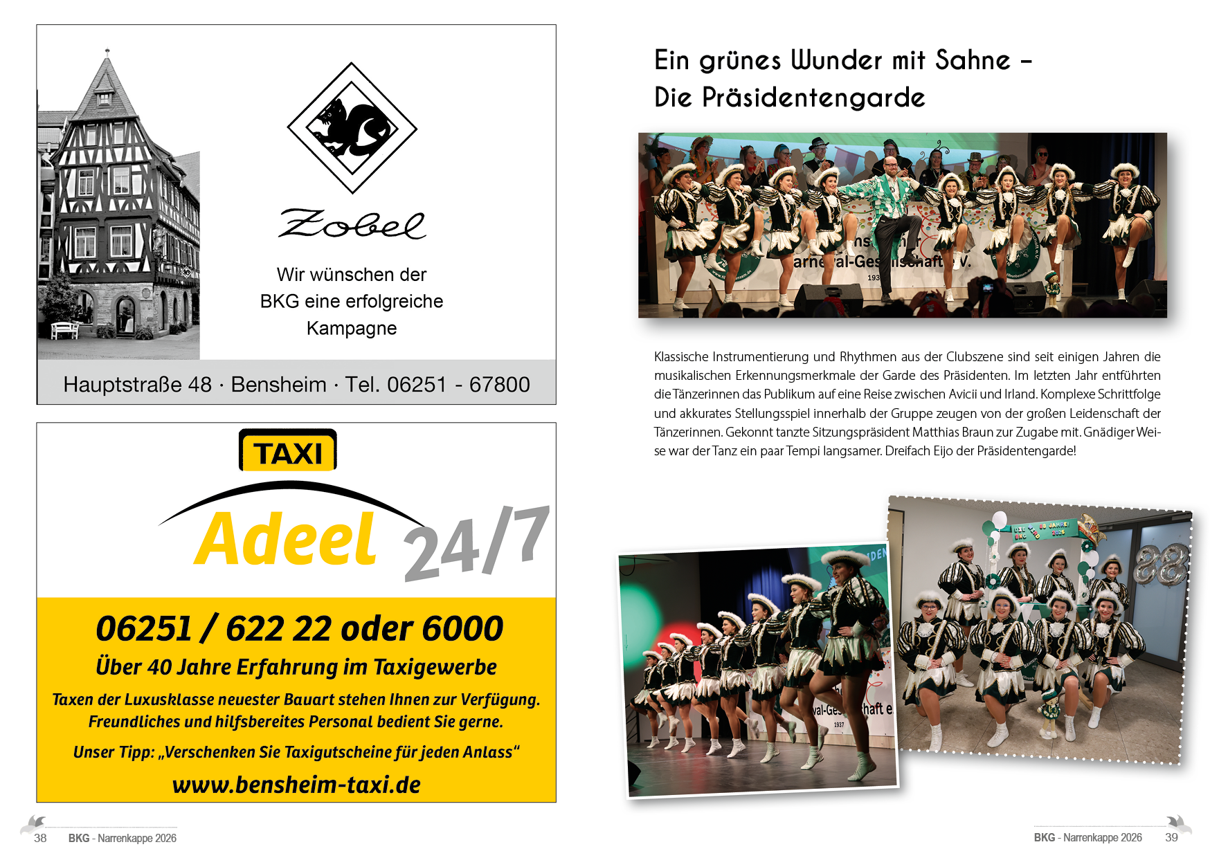 Wir freuen uns darauf, mit Euch in dieser Kampagne Märchen aus 1001 Fastnacht zu durchleben. Wir lassen es bei unseren Elferratssitzungen am 24. und 31. Januar 2026 im Kultur- und Kongresszentrum Bensheim (ehemals Bürgerhaus) wieder krachen. Nach den Sitzungen steigt unsere After-Show-Party. Wir freuen uns auf euch.