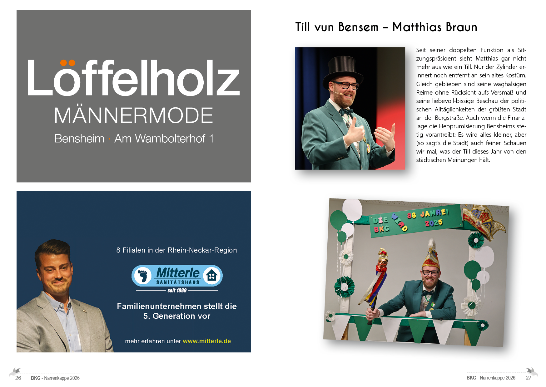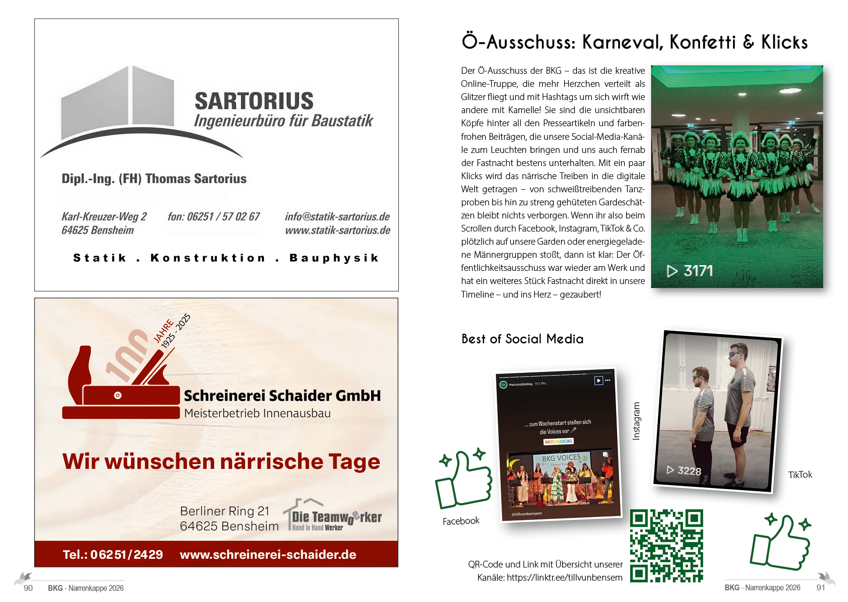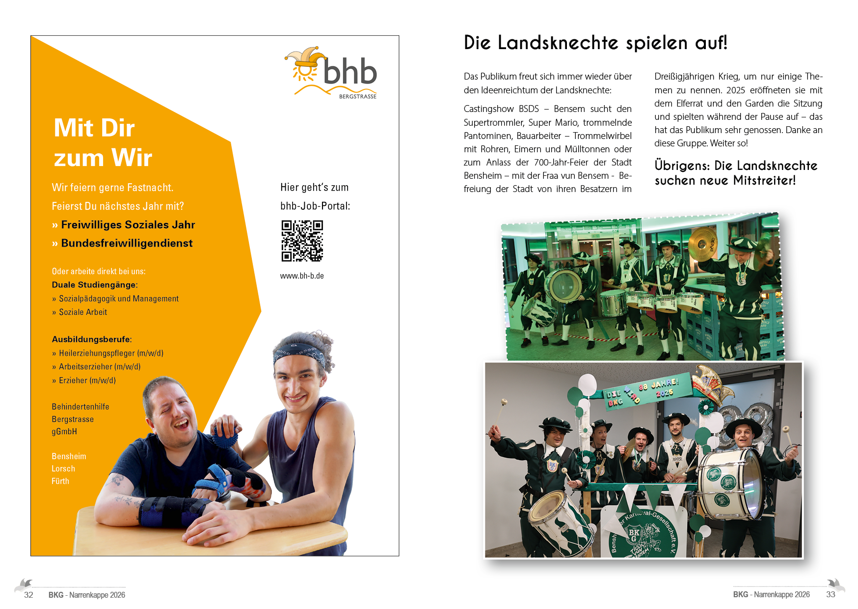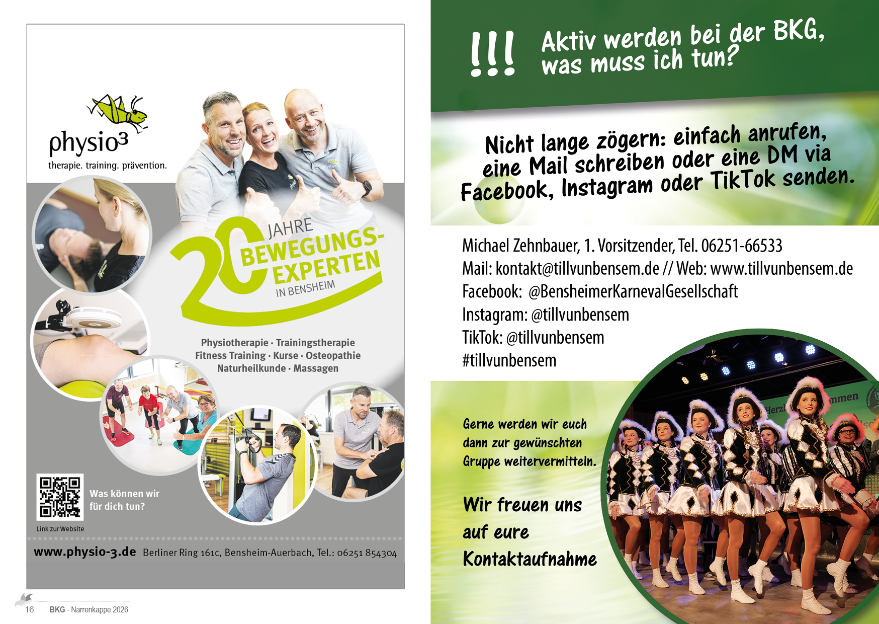 Die Vorbereitungen für die Fastnachtskampagne 2025/2026 laufen auf Hochtouren: unsere Gruppen wie die Tillgarde, Landsknechte und die Voices sind fleißig am Proben und suchen nach Verstärkung. Schaut euch die Aktivitäten der jeweiligen Gruppe auf Social Media an. Wenn Ihr Lust habt einzusteigen, schreibt uns via Facebook , Instagram oder TikTok oder schreib‘ einfach eine Mail an kontakt@tillvunbensem.de. Bensheim Eijo!