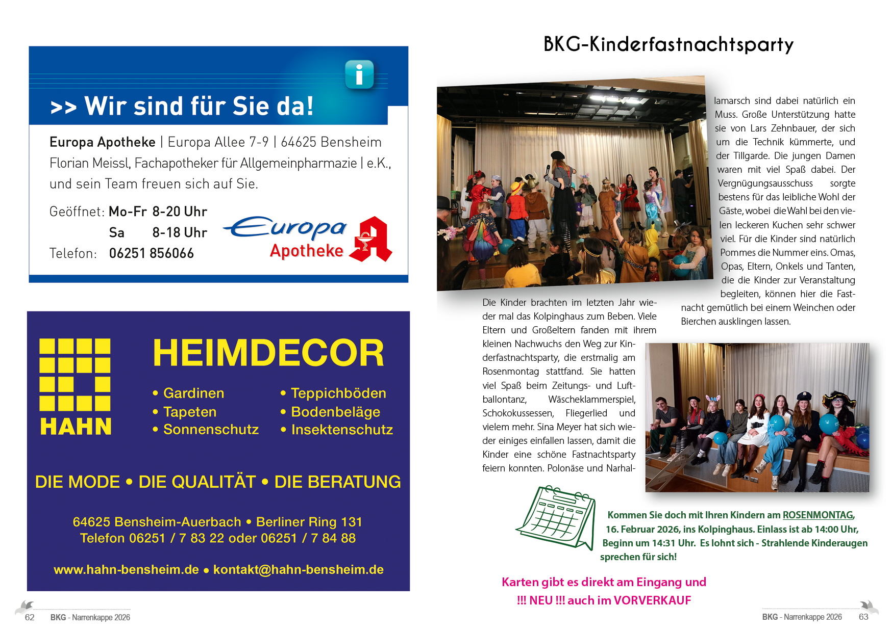 Zusätzlich findet am 10.01.2026 von 10:00 – 13:00 Uhr unser Kartenvorverkauf in unserem Vereinsheim (Schützenstraße 8A in Bensheim) statt, dort könnt Ihr vorbestellte Karten abholen oder spontan vorbeischauen und Karten erwerben.