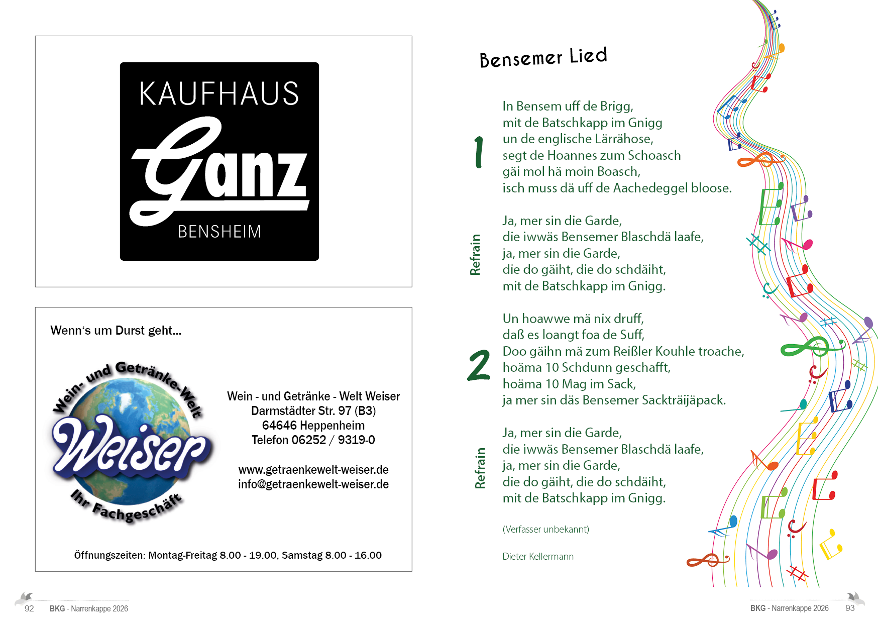 Eijo und herzlich Willkommen auf den Seiten der Bensheimer Karneval-Gesellschaft e.V.